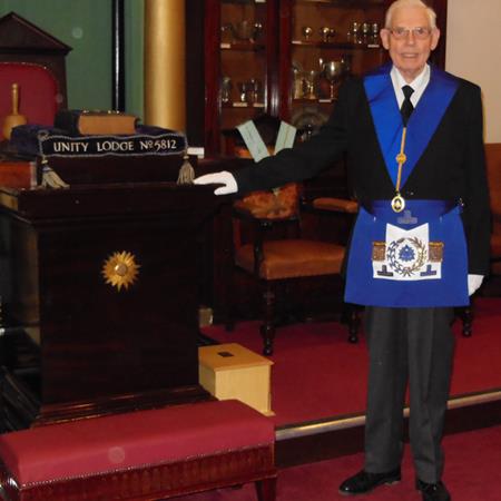 V.W. Bro. William Wallace Hayler, PGChap (BFG). He was Provincial Grand Chaplain of the British Forces Germany.He joined the Lodge in October 2013, and has since, sadly passed away to the Grand Lodge Above.
